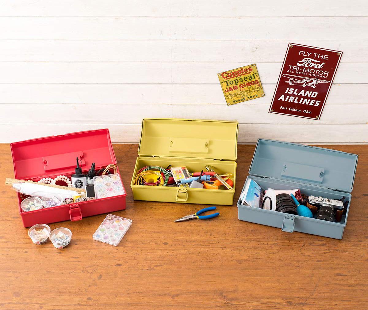 以經典工具箱為原型設計而成,不同的是選用了輕質的PP材質,在拿取以及清潔上更添便利,且選色既柔和又吸睛。