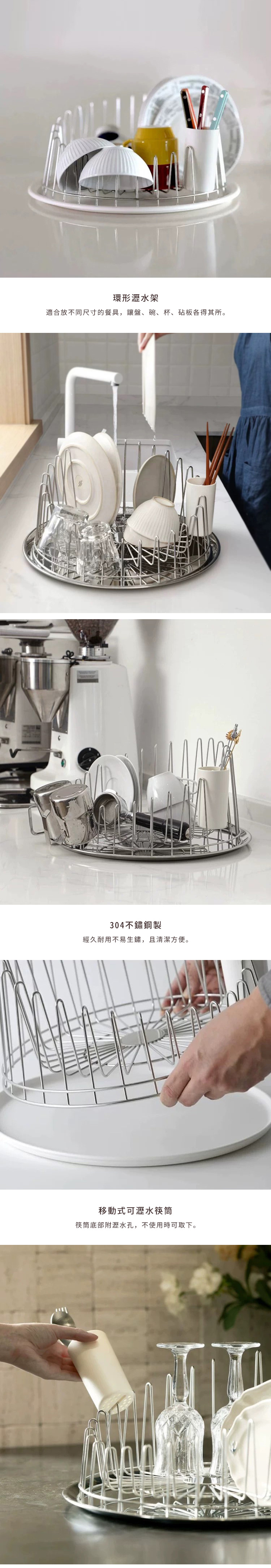 材質:[瀝水架]304不鏽鋼、[托盤]201不鏽鋼、[筷筒]熱塑性樹脂