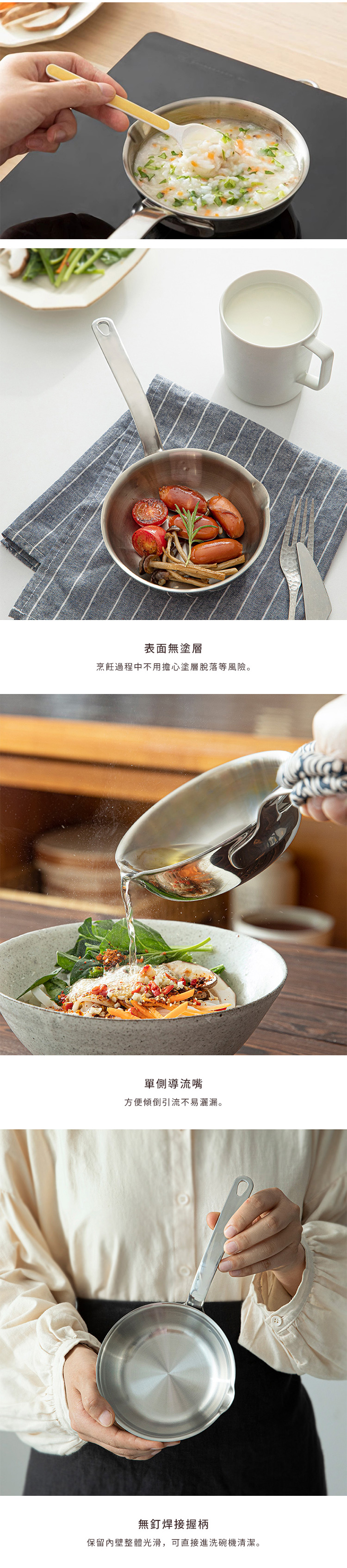 【日本霜山】多功能不鏽鋼迷你平底鍋-12cm (醬燒/潑油/熱奶油/煎蛋)
