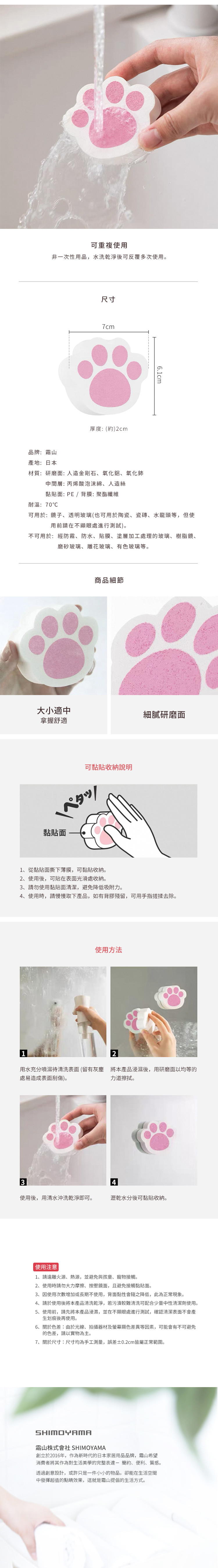 材質:[研磨面]人造金剛石、氧化鋁、氧化鈰、[中間層]丙烯酸泡沫綿、人造絲、[黏貼面]PE、[背膜]聚酯纖維