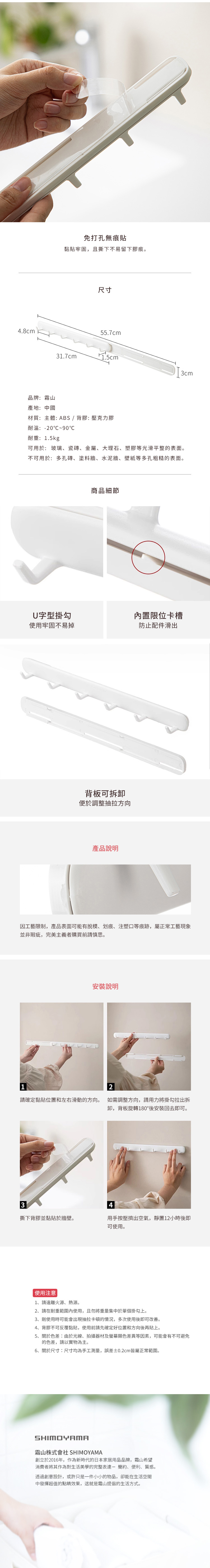 尺寸:[展開]長55.7×寬3cm、[收合]長31.7×寬3cm、[掛勾間距]4.8cm