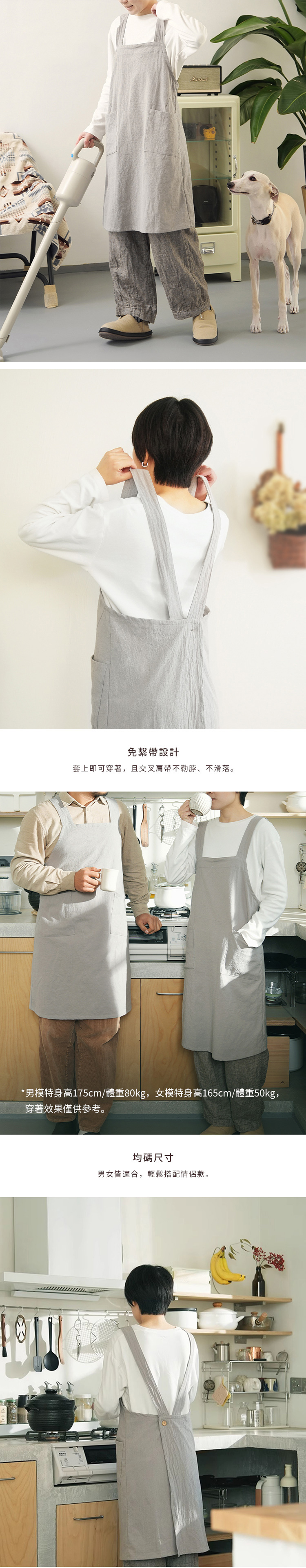 【日本霜山】水洗棉背掛交叉式圍裙附雙口袋(長100cm)