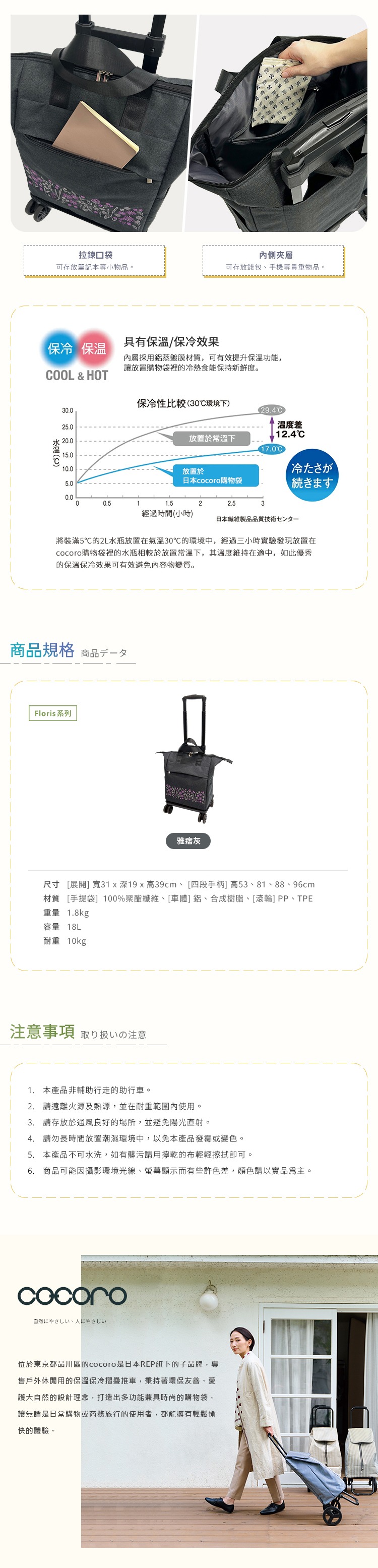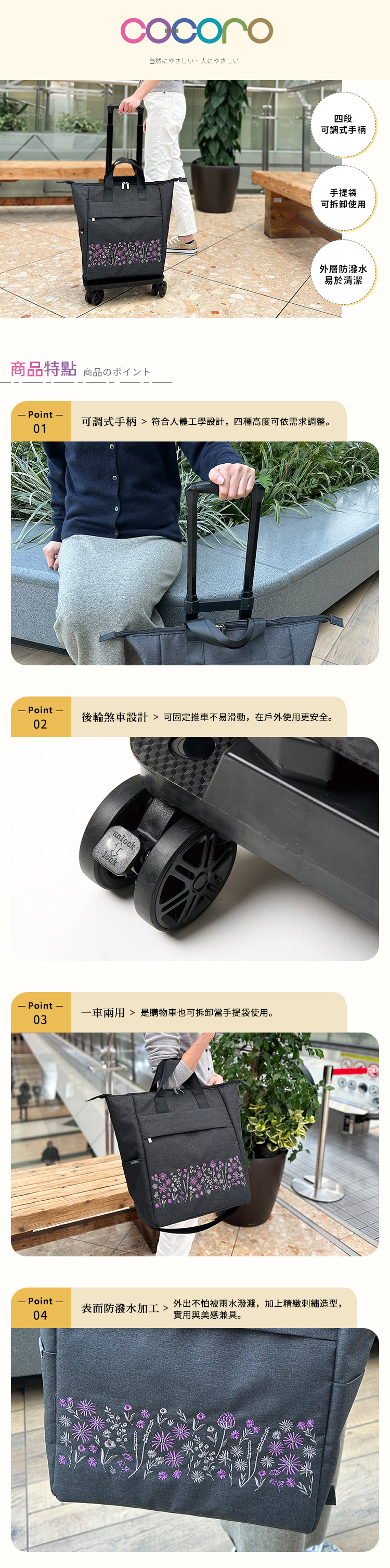 材質:[手提袋]100%聚酯纖維、[車體]鋁、合成樹脂、[滾輪]PP、TPE