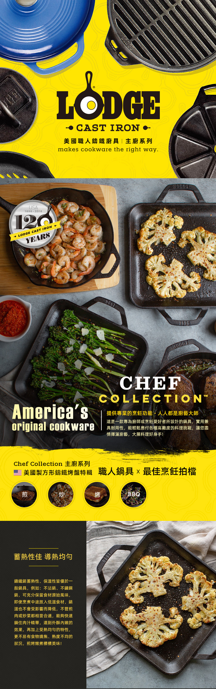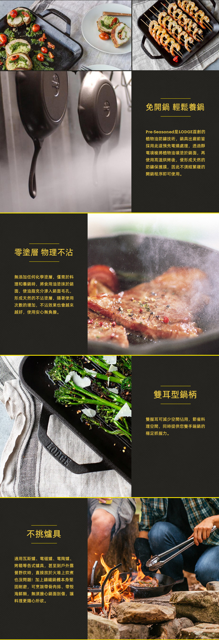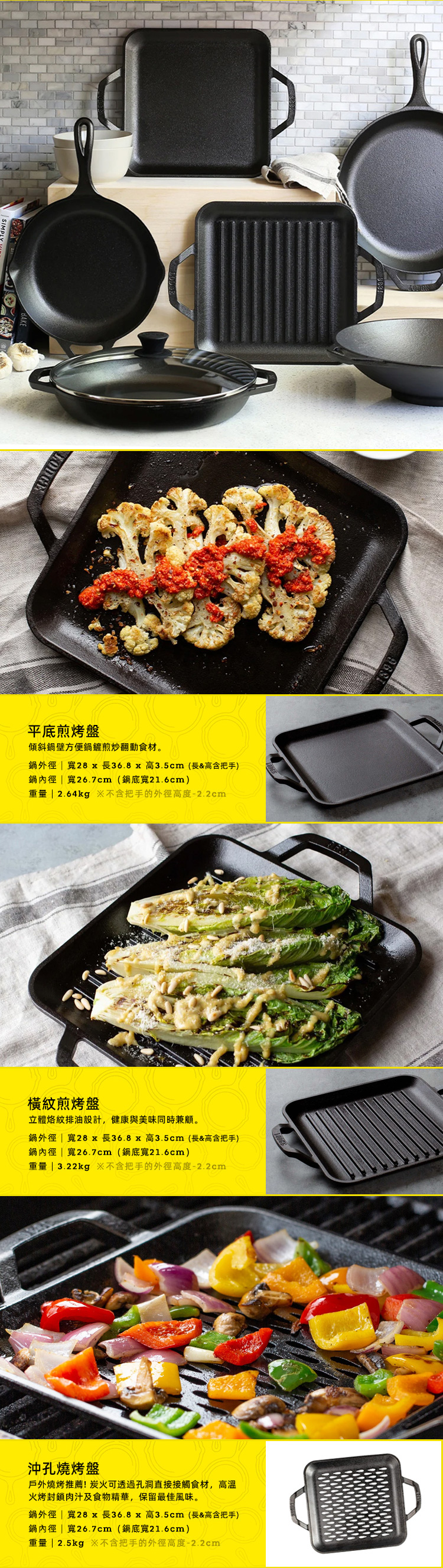 【美國LODGE】主廚系列 美國製雙耳方形鑄鐵沖孔燒烤盤-28cm