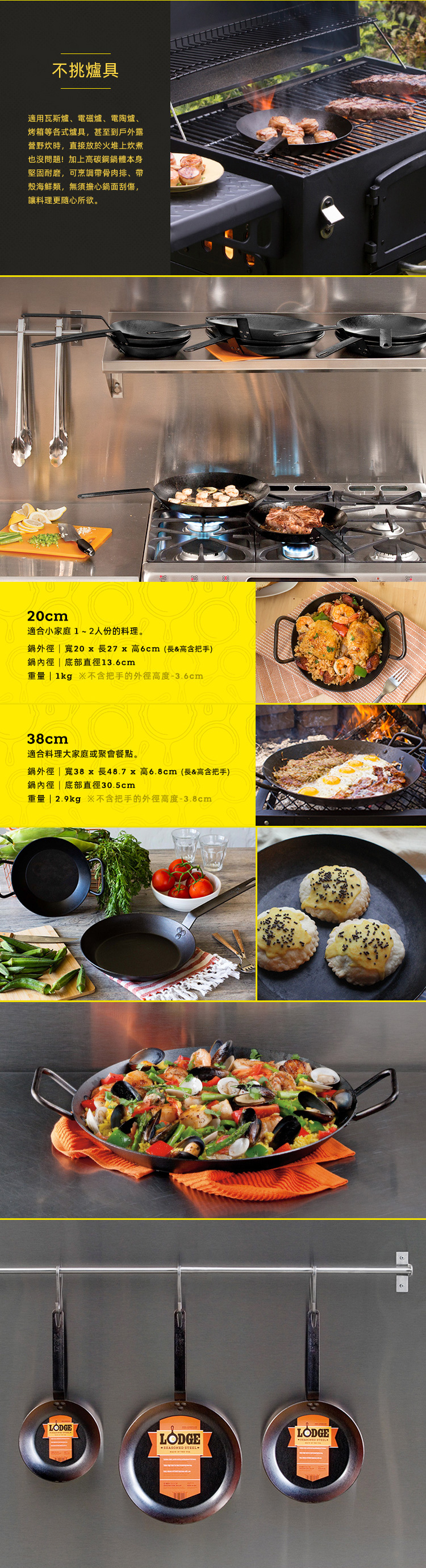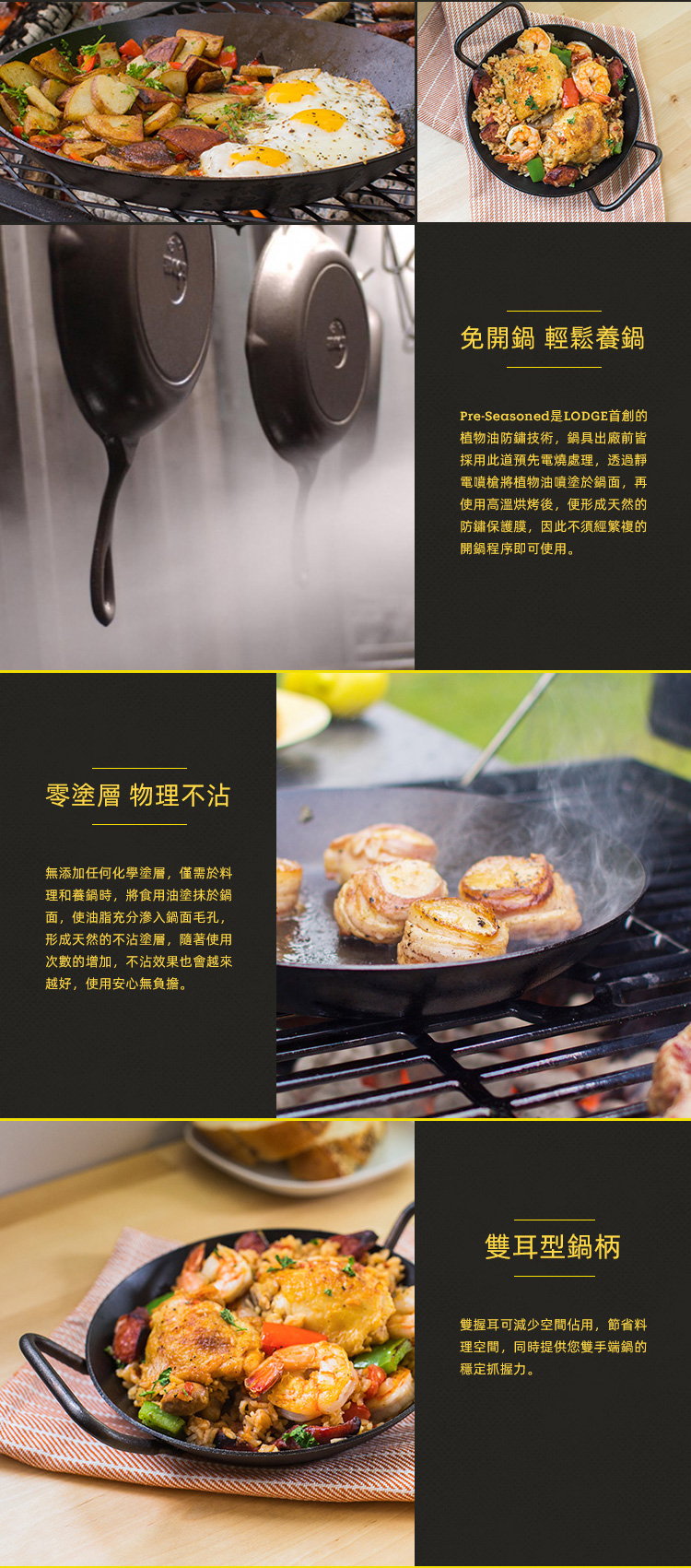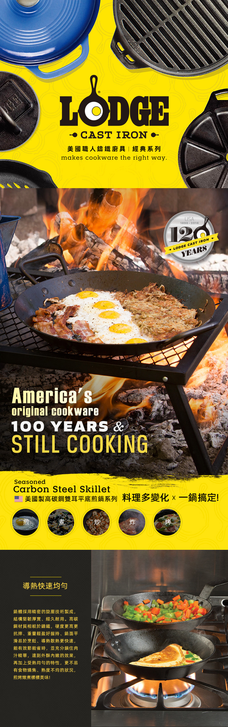 【美國LODGE】美國製高碳鋼雙耳平底煎鍋-38cm