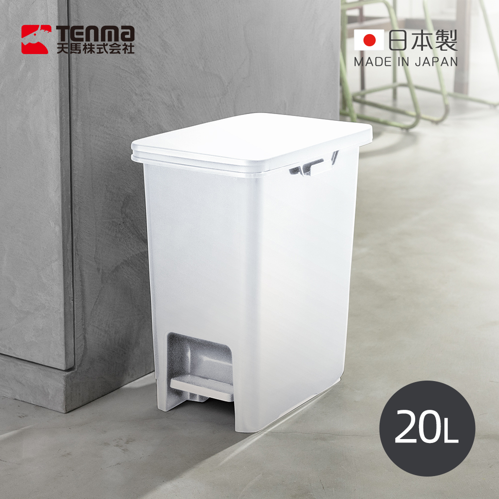 【日本天馬】日本製 WHItRash 腳踏式垃圾桶(附輪)-20L