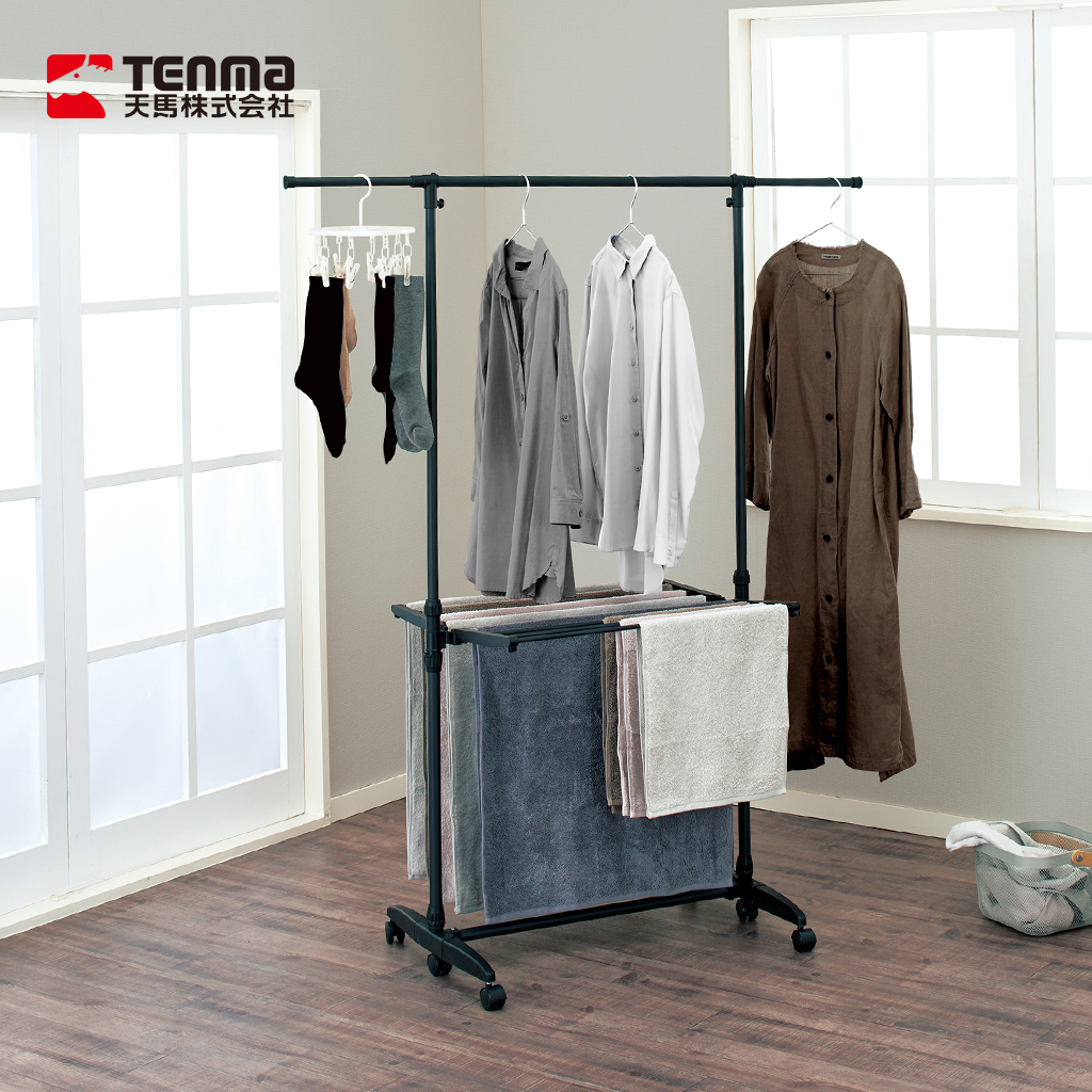 【日本天馬】PORISH 室內用多用途摺疊伸縮晾曬架(附輪)-DIY