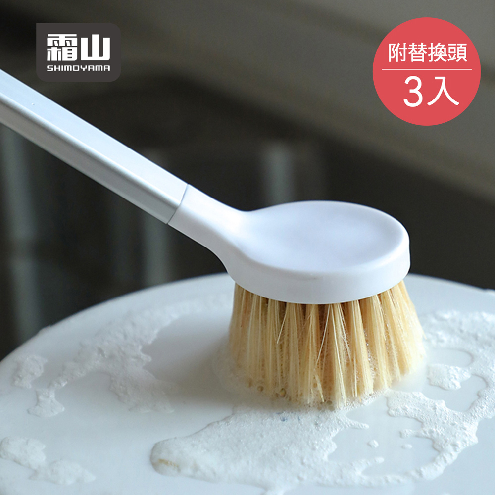 【日本霜山】長柄鋁桿鍋刷/清潔刷(附替換刷頭3入)