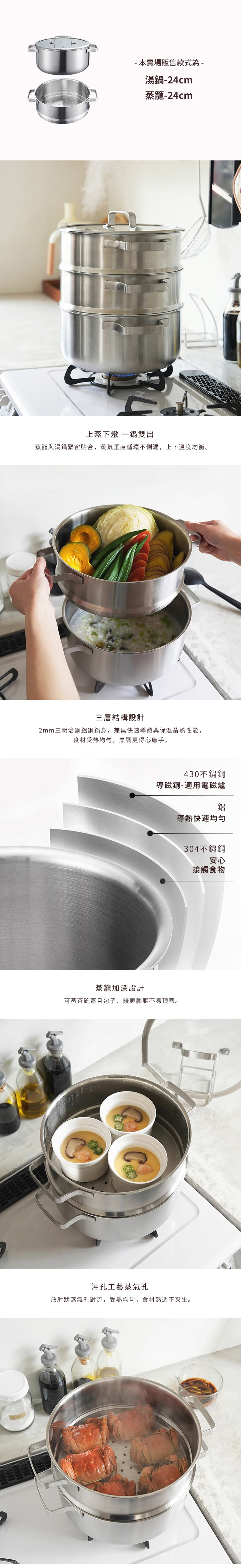 蒸籠材質:[主體]304不鏽鋼、[手柄]201不鏽鋼