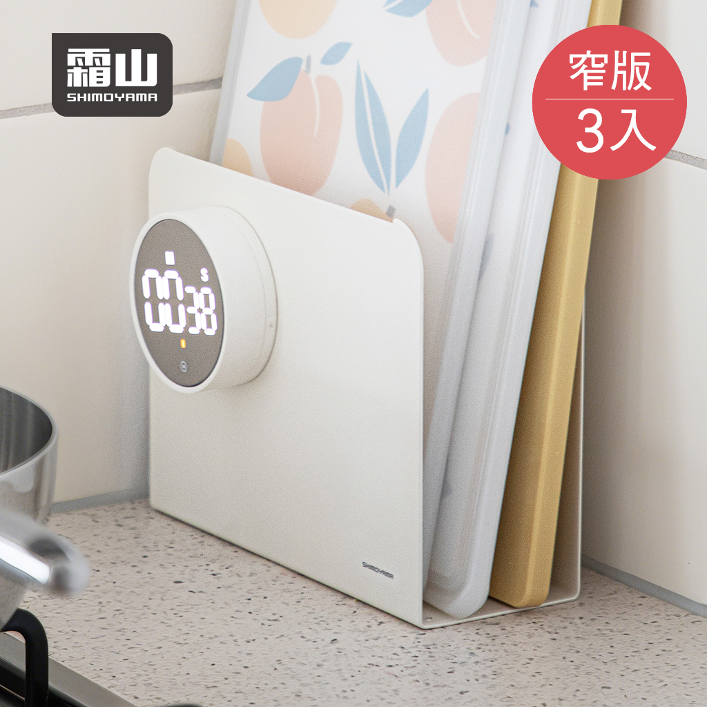 【日本霜山】碳鋼製廚房收納置物分隔立架(窄版)-3入-多色可選