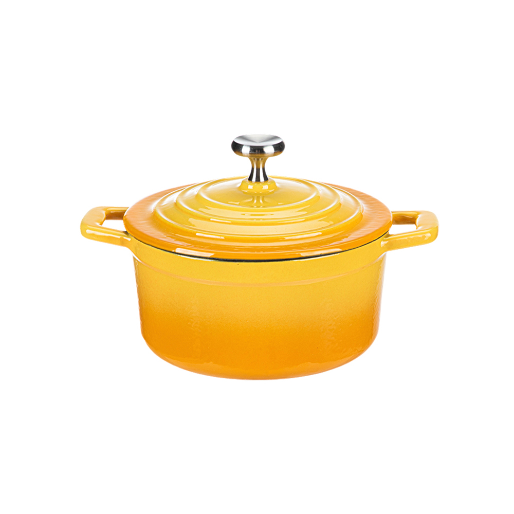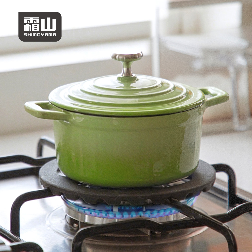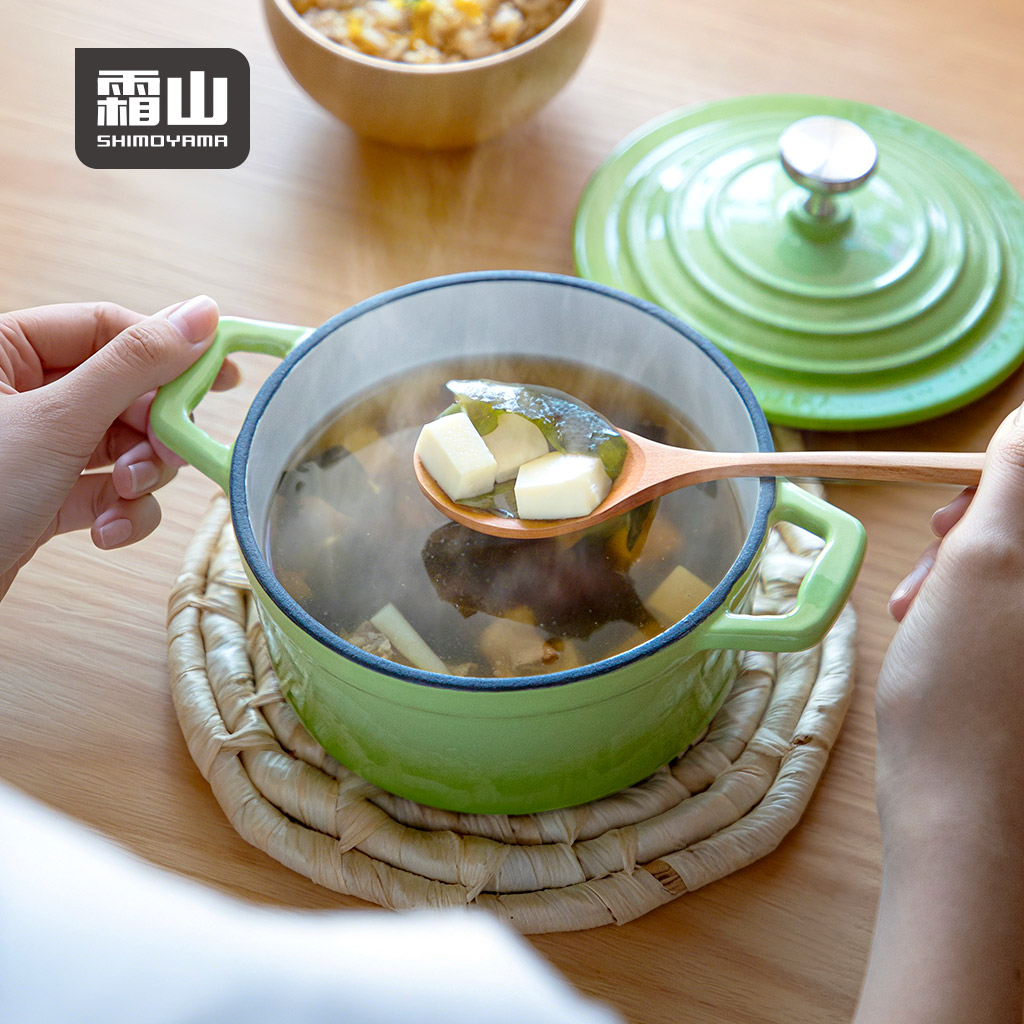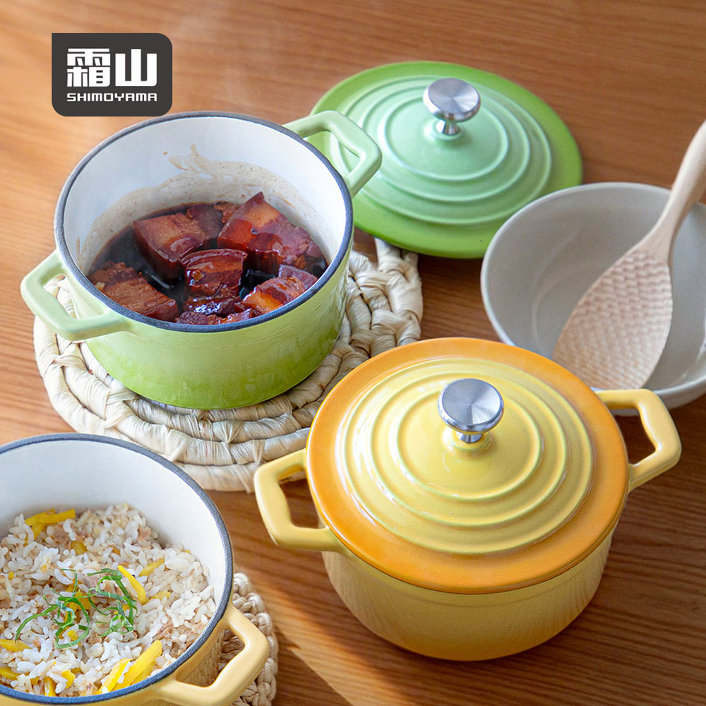 【日本霜山】漸層色雙耳琺瑯鑄鐵鍋(附蓋)-14cm-多色可選