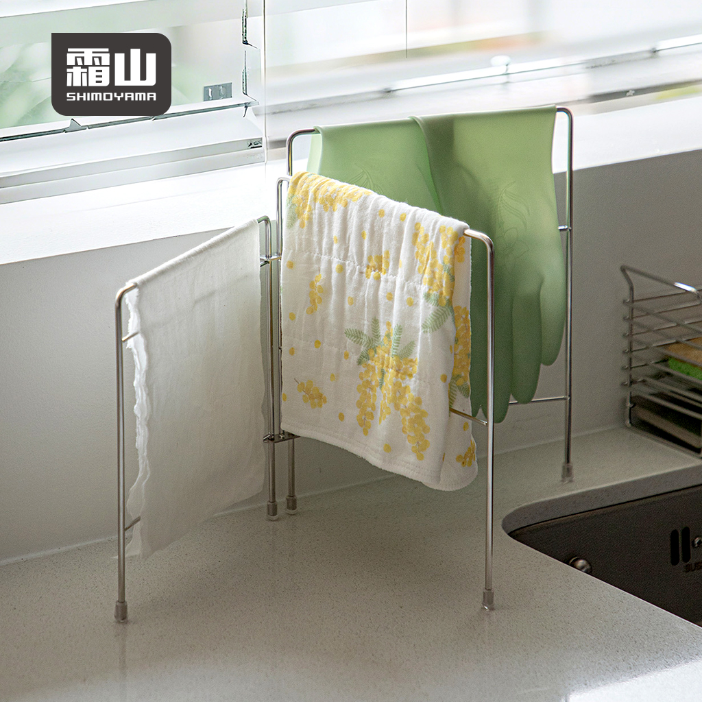 【日本霜山】304不鏽鋼三摺抹布架/折疊置物架