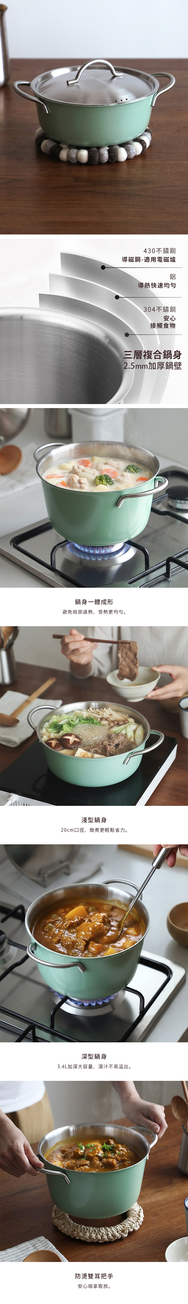 【日本霜山】深型三層複合不鏽鋼雙耳湯鍋(附蓋)-20cm