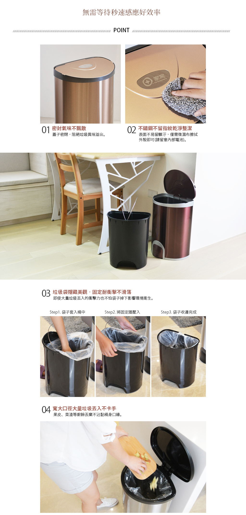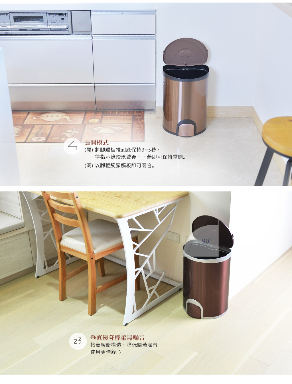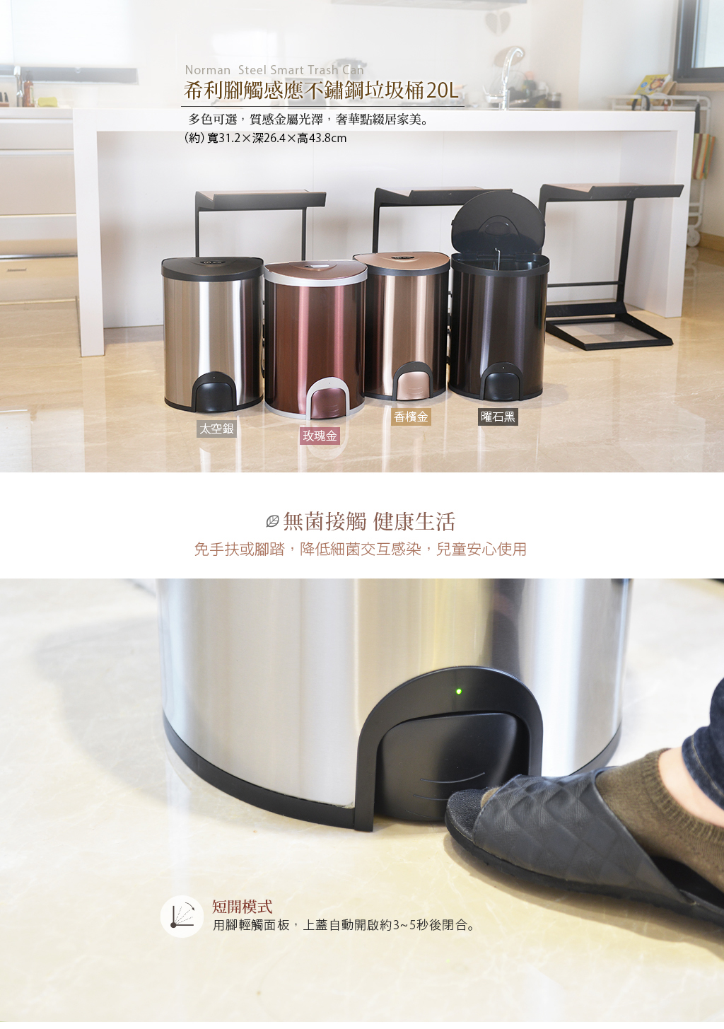 .腳觸感應秒速掀蓋,降低細菌接觸率