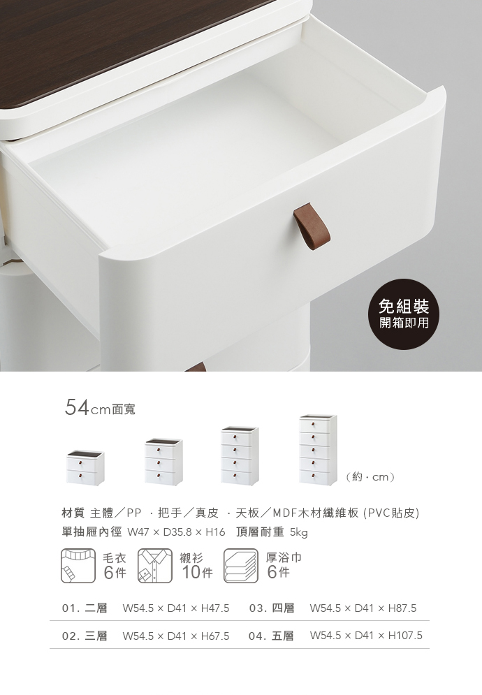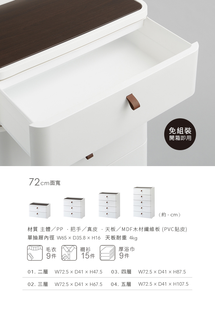 材質:[主體]PP、[把手]真皮、[天板]MDF木材纖維板(PVC貼皮)