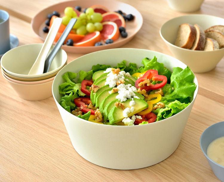 嚴選安全無毒Melamine原料,質地比一般塑膠精緻,擁有如陶瓷般的柔美質感,卻又比陶瓷堅硬耐碰撞、輕盈,針對這2大特點作為戶外用餐具來說,是最適合不過的使用首選,其耐熱溫度達130℃,可用於洗碗機清洗,適合盛裝輕食、涼拌菜等。