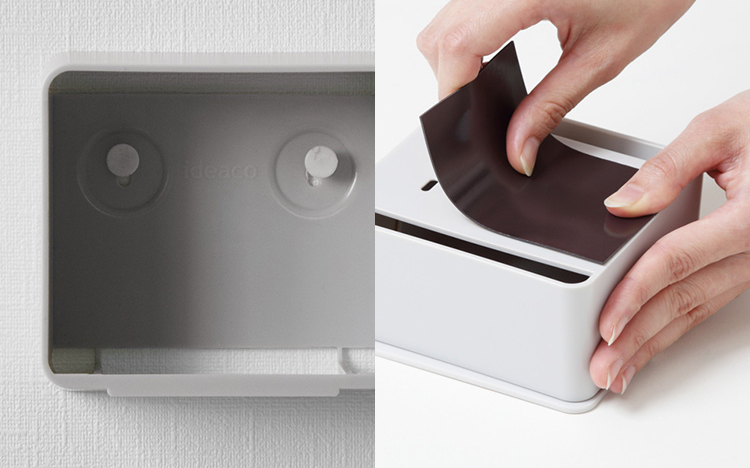 ◎ 鐵門除了使用本身附的背膠黏貼外,亦可使用磁鐵來固定於壁面。