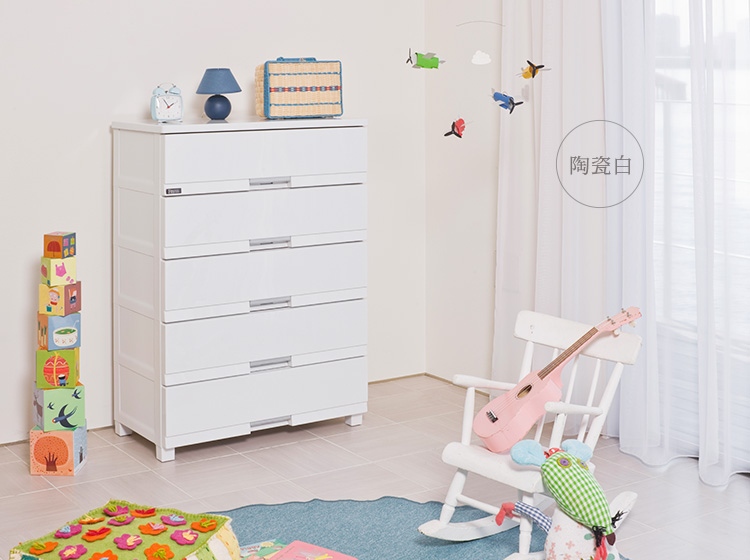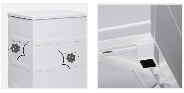 抽屜內左右側配置滑輪及防落卡榫,即使儲放大量物品,使抽屜變得沉甸甸的,開闔也相當滑順不卡卡!