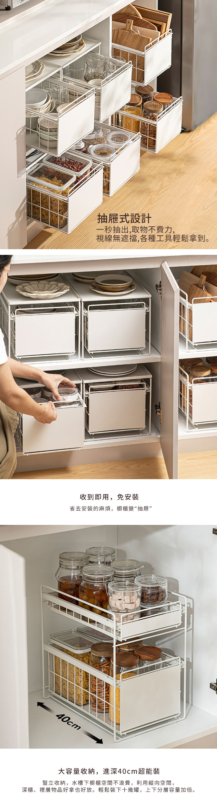 【日本霜山】櫥櫃水槽下抽屜收納置物架-雙層小款
