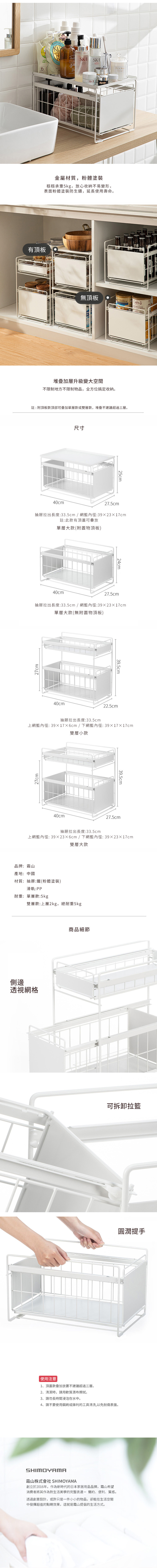 內徑:[上網籃]寬17×深39×高6cm、[下網籃]寬17×深39×高17cm
