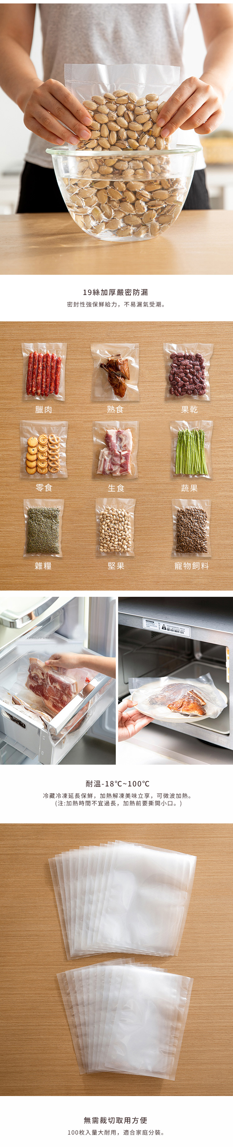 用途:用於蔬果、生熟肉類、雜糧穀物、乾果零食、寵物糧等密封分裝。