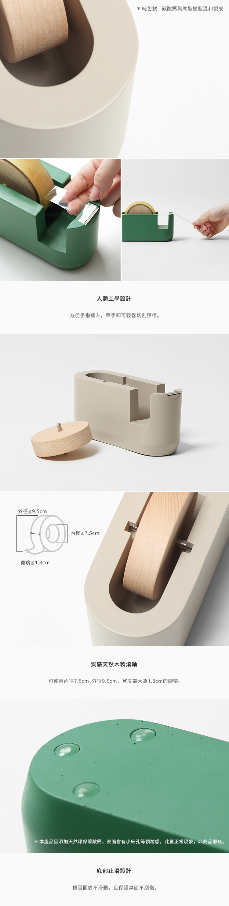 材質:[主體]碳酸鈣、聚酯樹脂、[滾軸]不鏽鋼、山毛櫸木、[防滑墊]矽膠