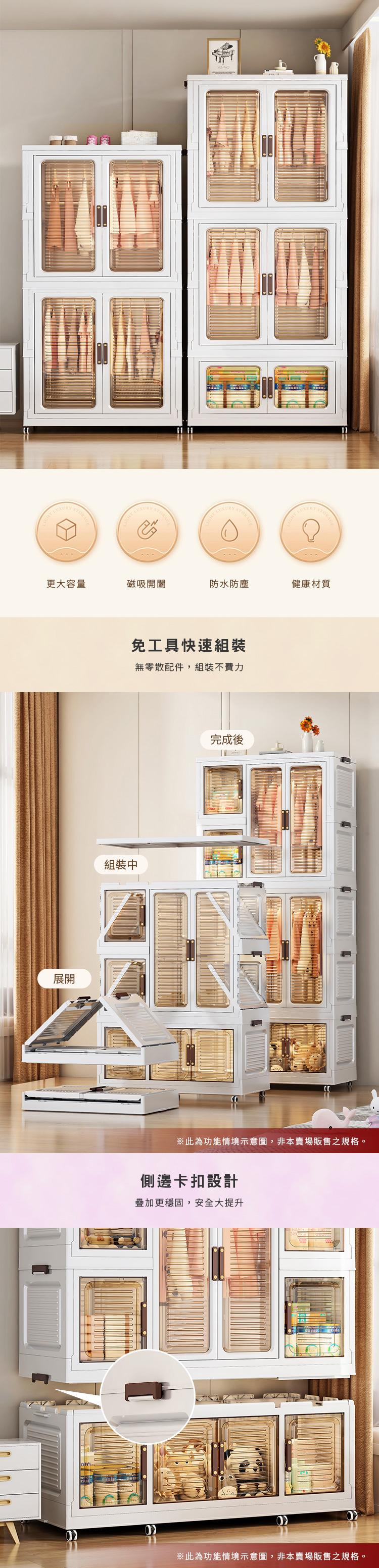 尺寸:[整體外徑]寬67×深45×高194.5cm、[衣櫃懸掛內徑]寬63×深42×高66cm、[收納箱內徑]寬63×深42×高36cm