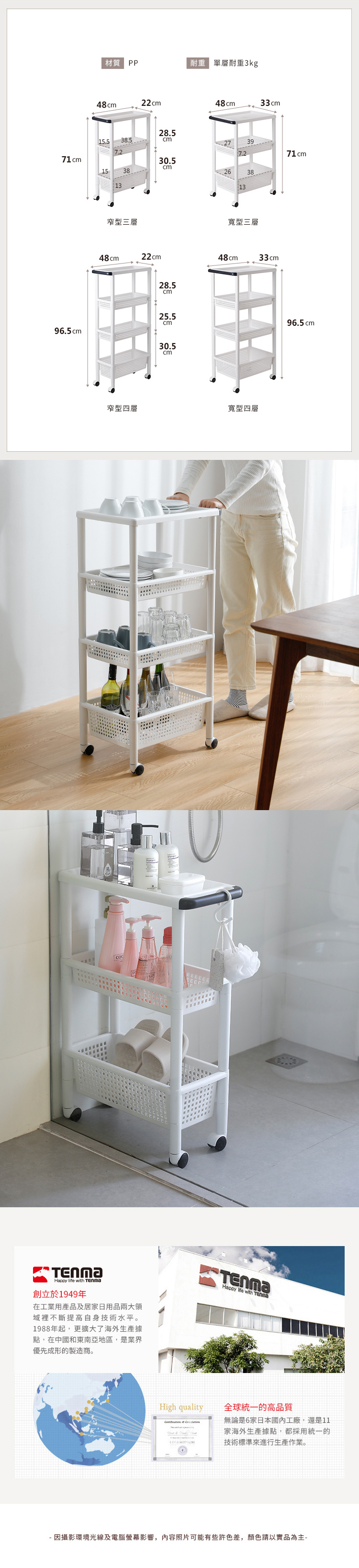 尺寸:寬22×深48×高71cm、[淺型置物籃內徑]寬15.5×深38.5×高7.2cm、[深型置物籃內徑]寬15×深38×高13cm