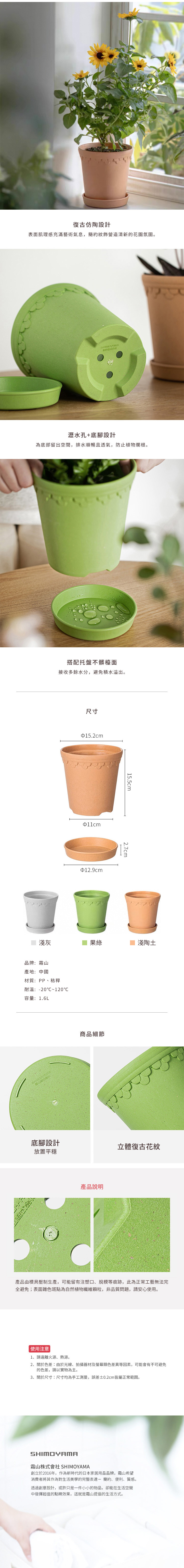 尺寸:[盆栽]口徑15.2×底徑11×高15.5cm、[托盤]直徑12.9×高2.7cm