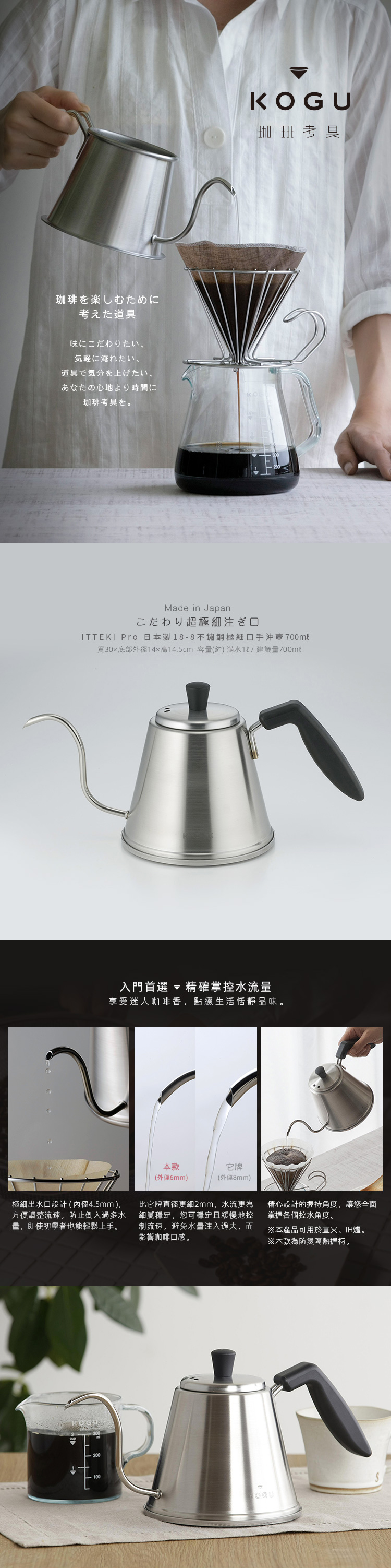 材質:[主體]18-8不鏽鋼、[底部]18-0不鏽鋼、[握柄]酚醛樹脂、[壺鈕]66尼龍