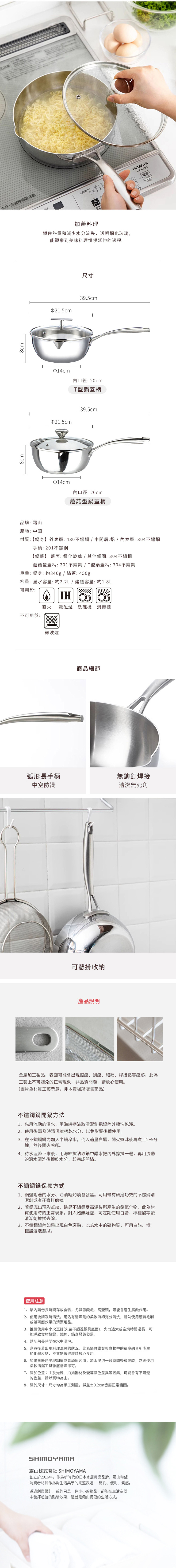 尺寸:長(含手柄)39.5cm×高13.8cm、[鍋底直徑]14cm、[內口徑]20cm