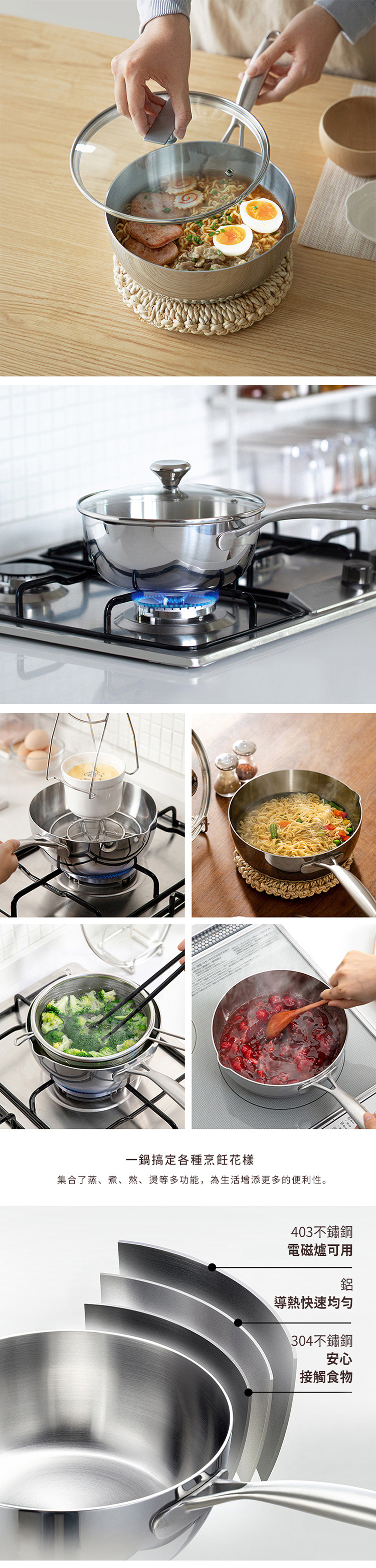 材質:[主體]403不鏽鋼、304不鏽鋼、鋁、 [把手]201不鏽鋼、[鍋蓋]鋼化玻璃、201不鏽鋼、304不鏽鋼
