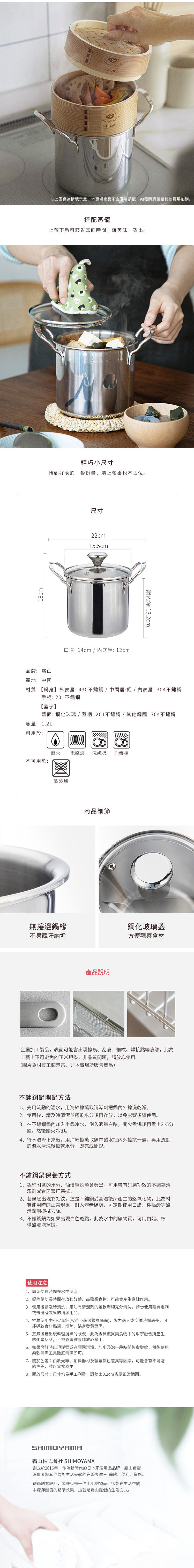 尺寸:長(含鍋耳)22×高18cm、[不含鍋耳直徑]15.5cm、[口徑]14cm、[內底徑]12cm、[鍋內深13.2cm
