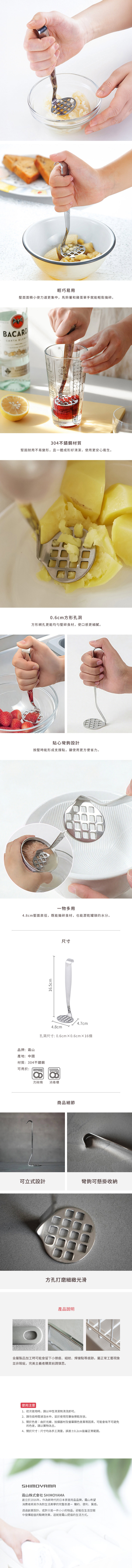 【日本霜山】304不鏽鋼一體成形壓泥器/搗泥器-16.5cm