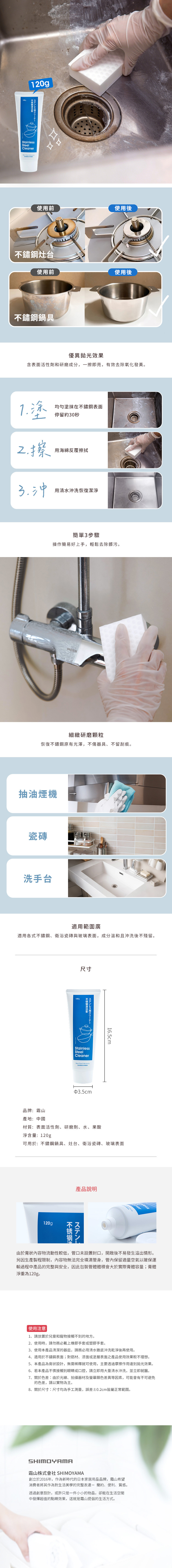 【日本霜山】多用途去污拋光不鏽鋼清潔膏-120g-3入