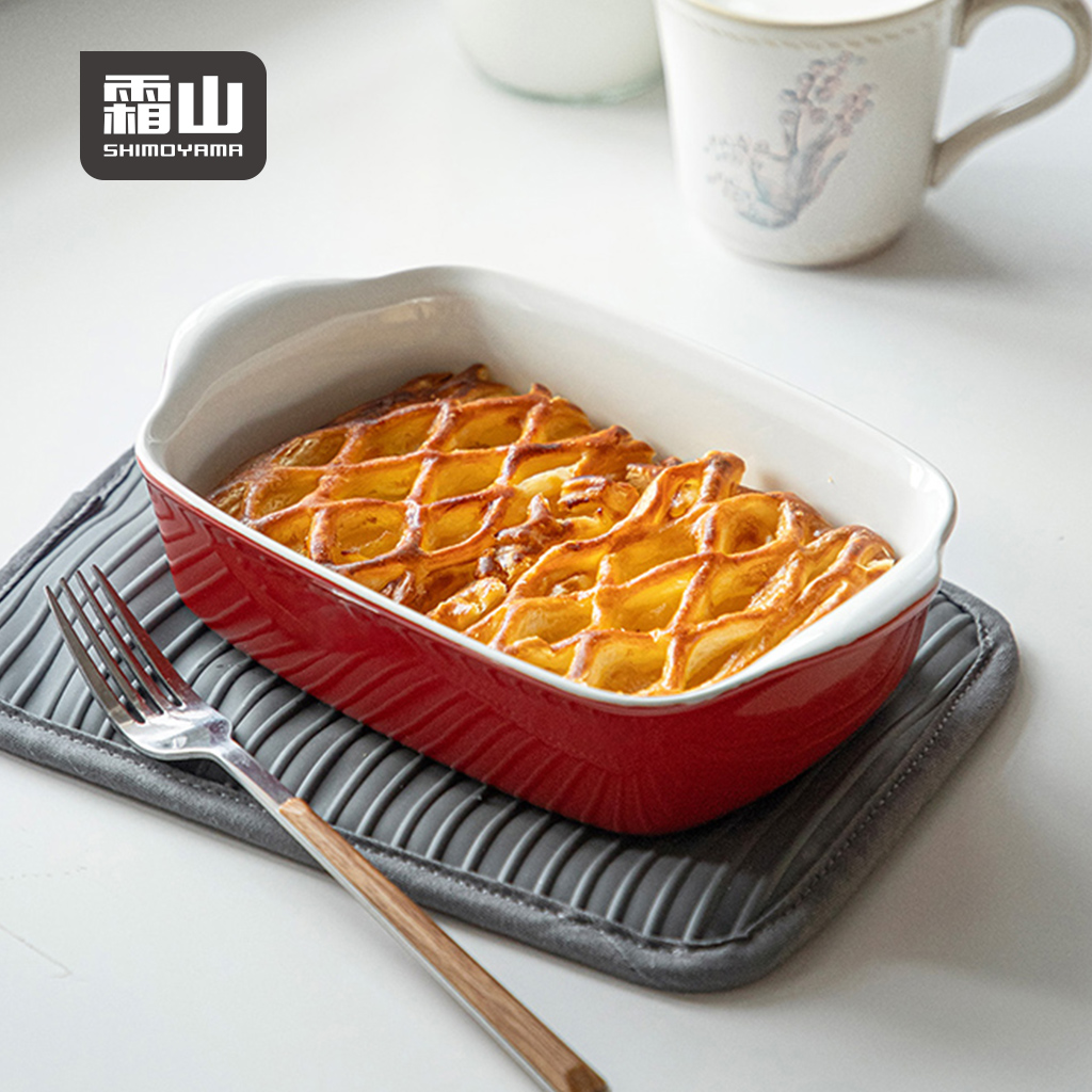 【日本霜山】雙耳耐熱陶瓷烤盤/焗烤盤-700ml