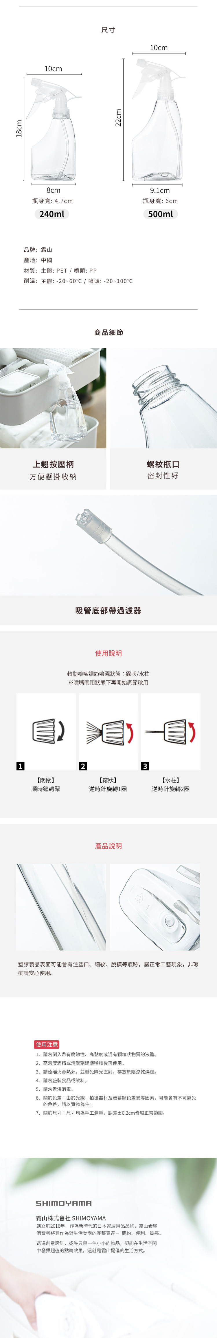 耐溫:[主體]-20~60℃、[噴頭]-20~100℃